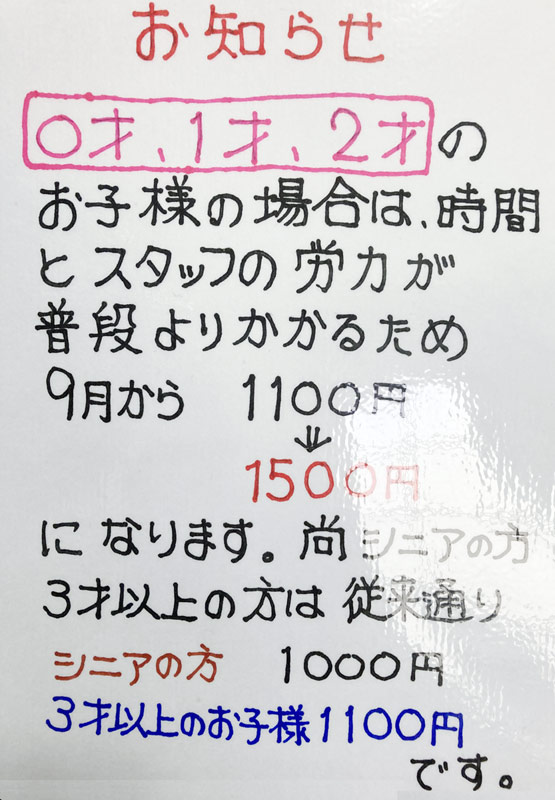 ※シニア1,000円、3歳以上のお子様1,100円は変わらず